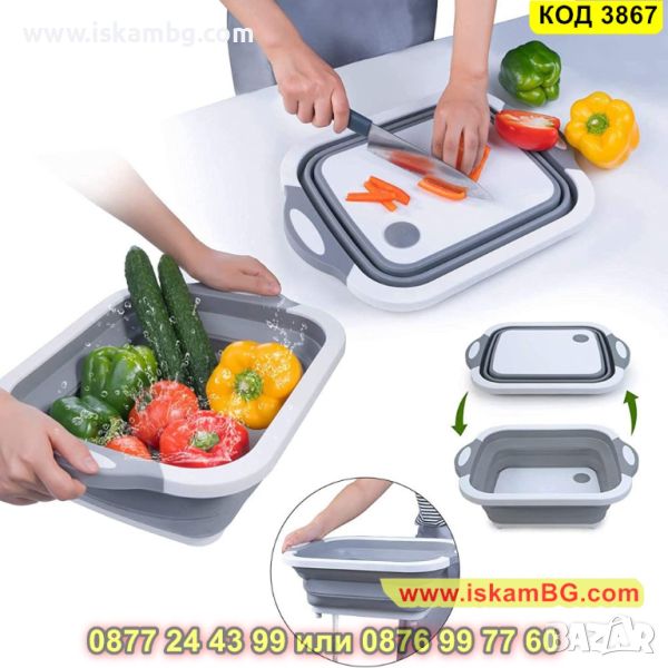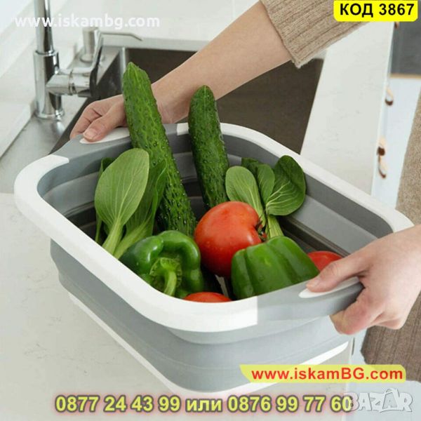 Сгъваема купа с отцедник и дъска за рязане - 1 брой