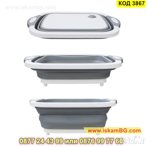 Сгъваема купа с вградена дъска и гевгир с вместимост до 5 литра - КОД 3867