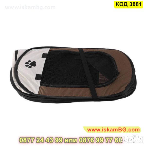 Отваря се горната част (кръгъл прозорец) и страничен прозорец с цип, за да поставите и премахнете животното.