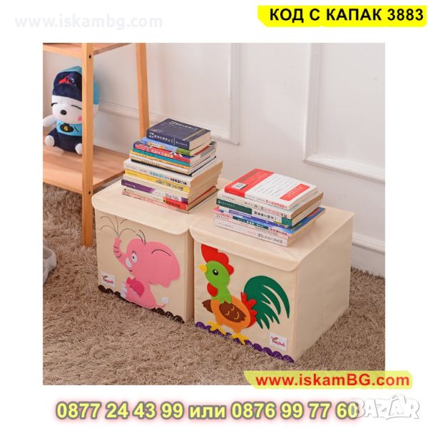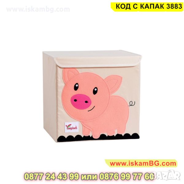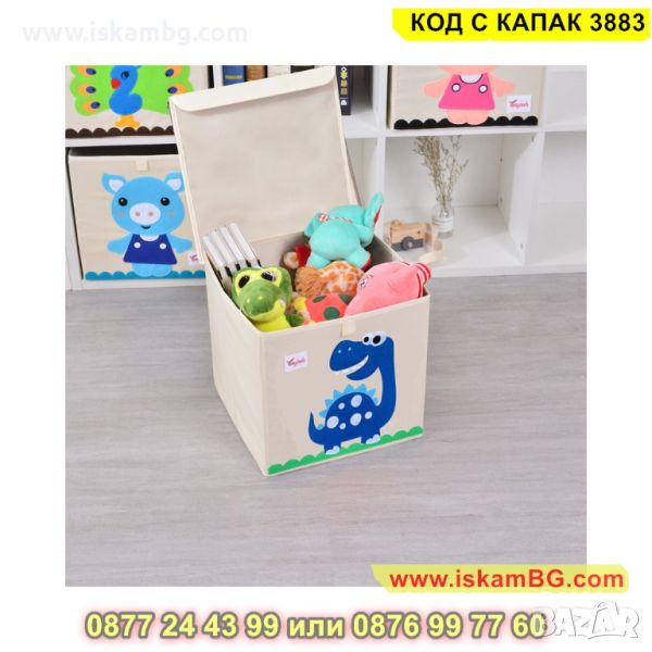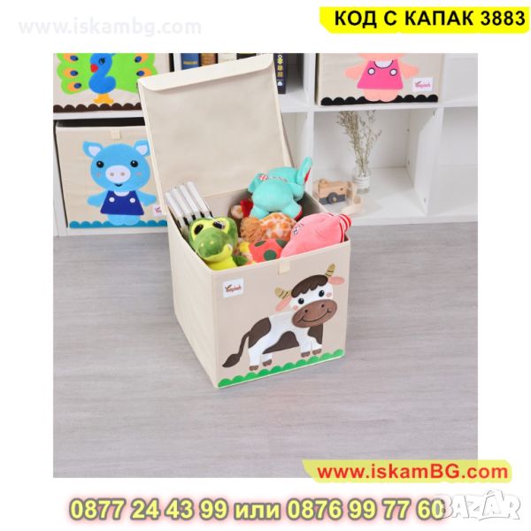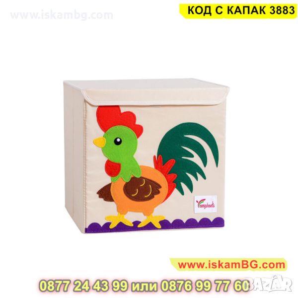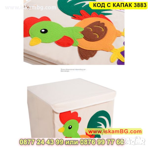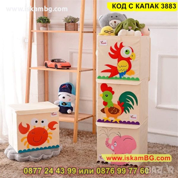 Кутия за играчки с картинки на различни животни и капак - КОД С КАПАК 3883