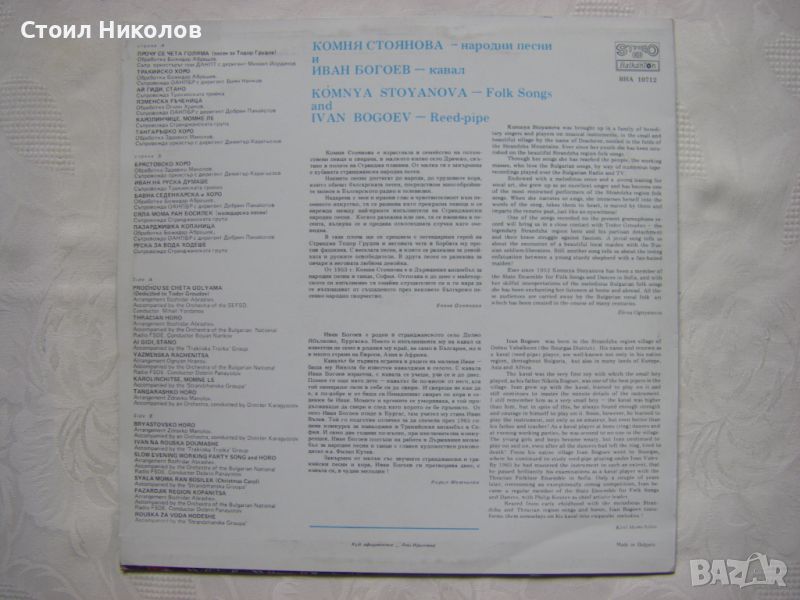 Грамофонна плоча - ВНА 10712 - Комня Стоянова - Народни песни; Иван Богоев - Кавал