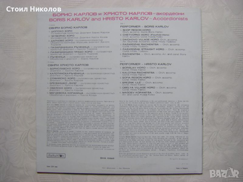 Грамофонна плоча - ВНА 10683 - Борис Карлов, Христо Карлов - акордеони