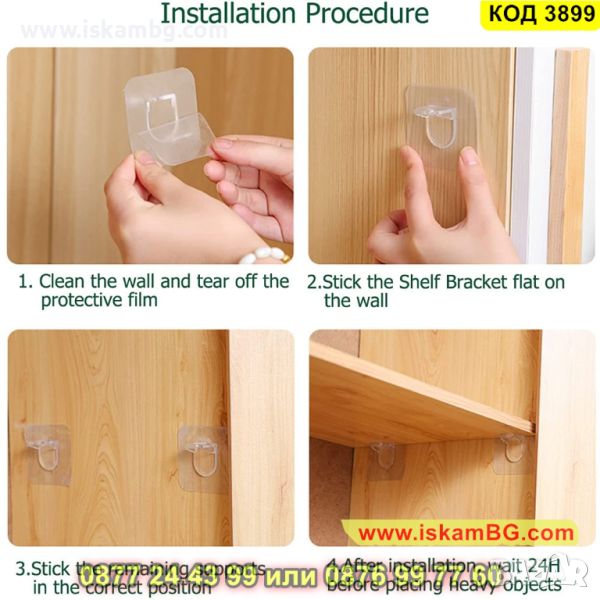 Комплект от 4 броя самозалепващи се държачи за рафт - КОД 3899