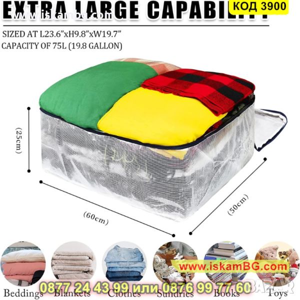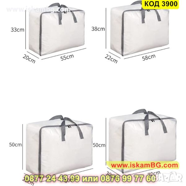 1 брой чанта с цип и дръжки за съхранение на завивки и дрехи (според избрания от вас размер)