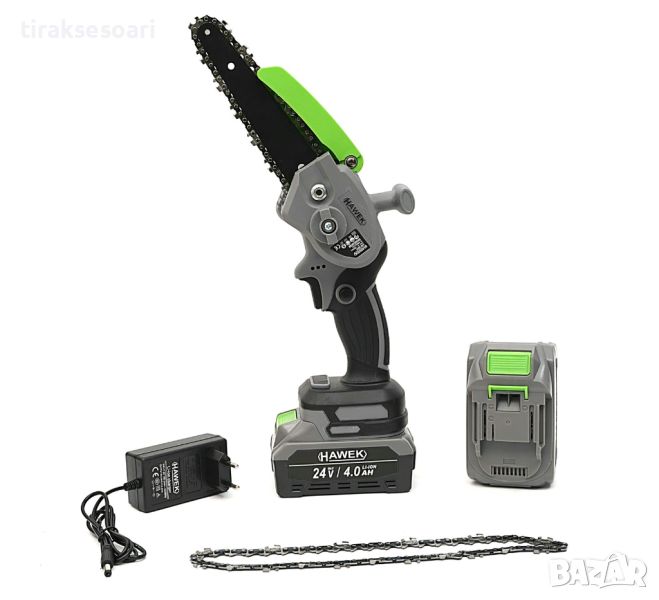 Акумулаторен мини верижен трион 24V 4Ah с 15 см шина HAWEK