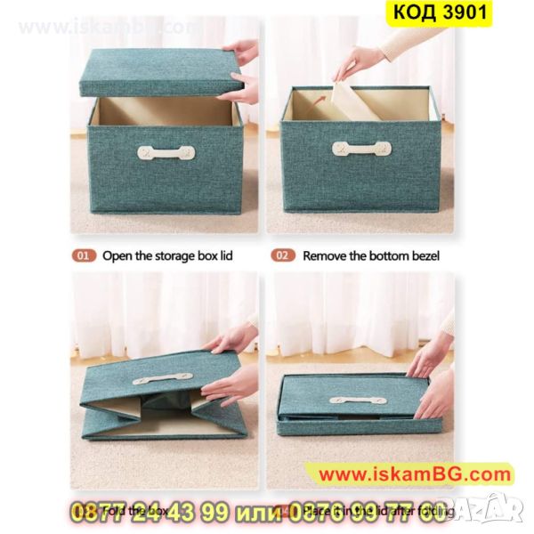 Сгъваща се текстилна кутия с капак за съхранение - КОД 3901 → Обява 45455350