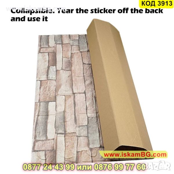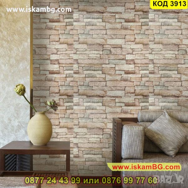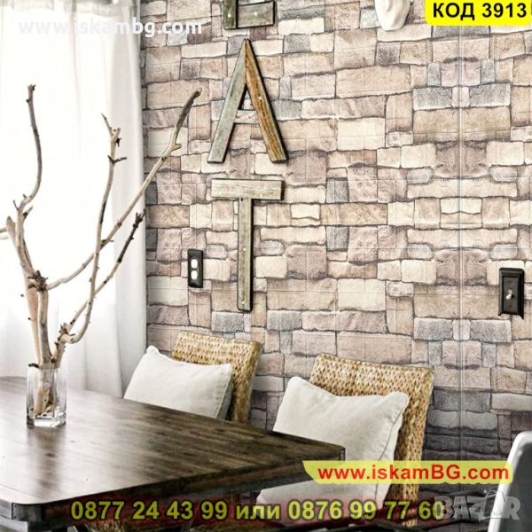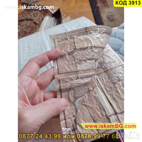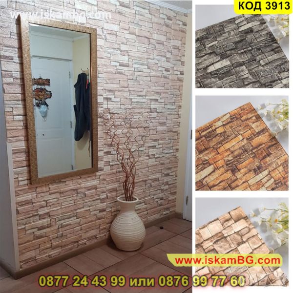 Самозалепващите се 3D тапети, които имитират естествен камък. Съставът им е от екологично чист материал, който има свойства да изолира от звук, температура и вода. Няма мирис, като същевременно с това е мек и гъвкав и издържа на атаки от вредни насекоми. Самозалепващият се тапет, имитиращ естествен камък, е продукт от полиетиленова пяна, която идеално звукоизолира и изолира вода и температура. Той е гъвкав, лек, устойчив на повреди, без мирис. Въпреки че е екологично чист материал , той не е податлив на гъбична активност и е устойчив на атаки от насекоми. Самозалепващият се 3D панел се справя отлично с всички несъвършенствата по стените Ви – вдлъбнатини, влага, остатъци от пробивания и други. Поставя се лесно - трябва да отлепите гърба на тапета и да залепите.