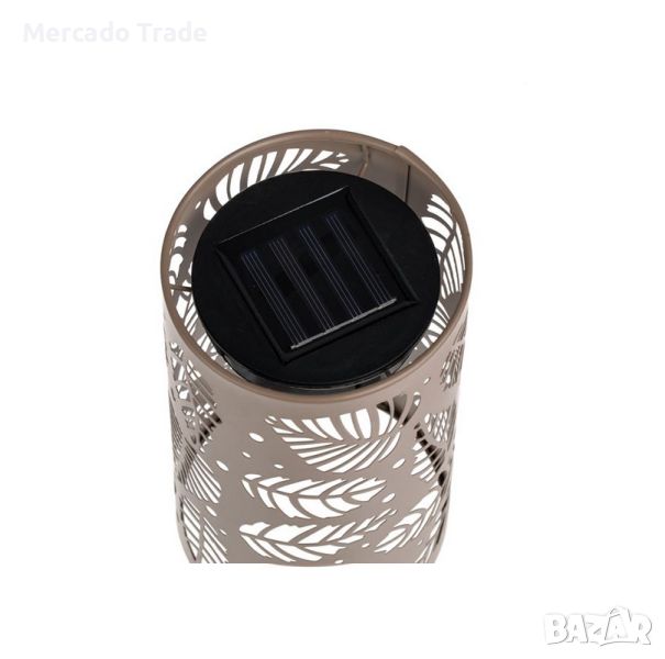 Декоративен соларен фенер Mercado Trade, цилиндричен соларен фенер с дизайн на перфорирани тропически листа и бял светодиод.Свети автоматично през нощта.