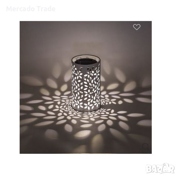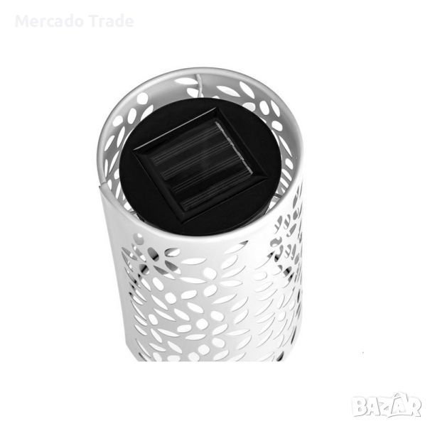 Декоративен соларен фенер Mercado Trade, цилиндричен соларен фенер с дизайн на перфорирани тропически листа и бял светодиод. Свети автоматично през нощта.