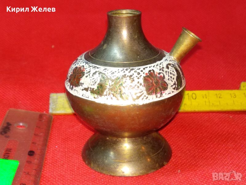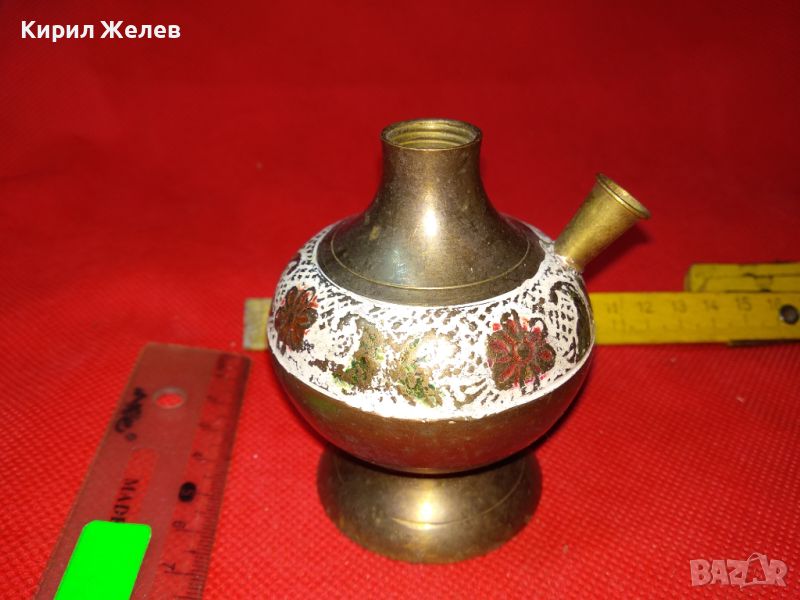СТАРО КРАСИВО ОРНАМЕНТИРАНО КОЛЕКЦИОНЕРСКО ЕМАЙЛИРАНО МЕСИНГОВО НАРГИЛЕ 10796