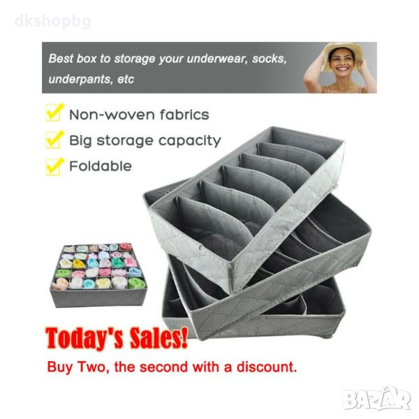 1 бр. с 24 отделения, подходящи за бельо и чорапи - размери: 35 * 28 * 9.5 см.;