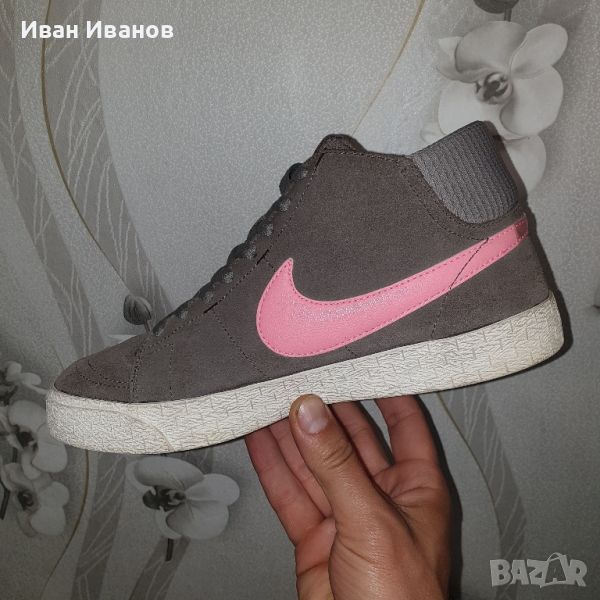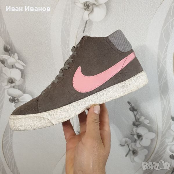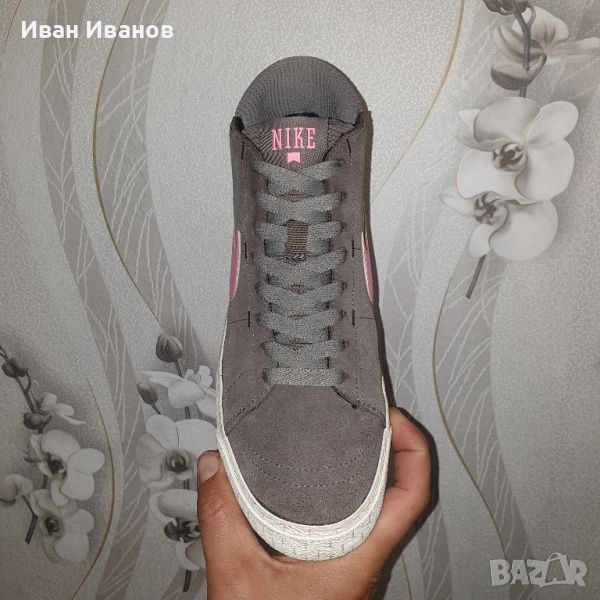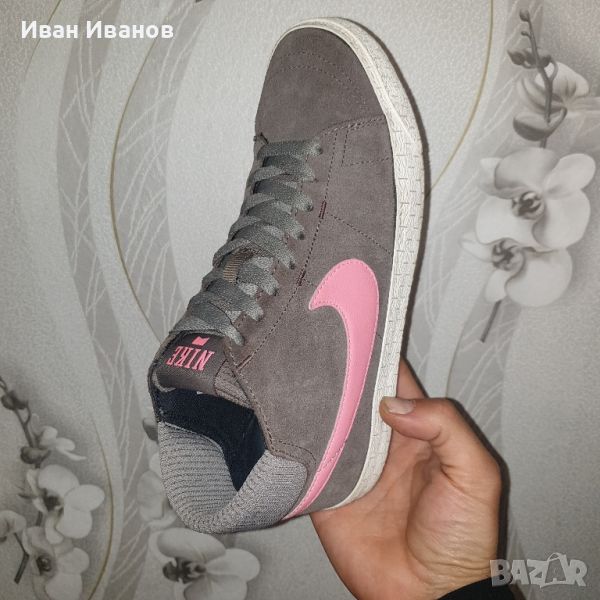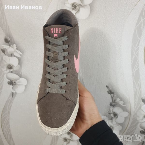 NIKE BLAZER MID LR WMNS DARK MUSHROOM / POLARIZED PINKНови , само пробвани . - високи обувки- горна част: синтетична кожа, велур, мат. текстил- подметка: гумена, издръжлива.- подметката е покрита с неравен модел, благодарение на който щифтовете на педалите винаги ще намерят точка за закрепване.- удобна вътрешна вложка.- еластични ленти предотвратяват движението на езика настрани.- леко гъбест език и якаОбувки Nike Blazer Mid LR се отличават с популярната лепкава гумена външна подметка и издръжлив велурен дизайн на горната част, който всеки обича.ХарактеристикаКожена горна част.Текстилна подплата.Класически средни кецове от кафяв велур в цвят каки.Ремастериран за скейтборд с превъзходна защита срещу удар.Закопчаване с връзки с осем дупки.Дизайн на панел с горни шевове.Контрастен текстилен Nike Tick Panel отстрани/отзад.Подплатен текстилен заден панел на глезена/яката с бродирано лого.Подплатен мрежест език с кръпка с лого Nike.Комбинация от лунна междинна подметка и чорап за защита от удар/усещане за дъска.Gum Wavy Grip Performance Sole.