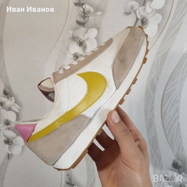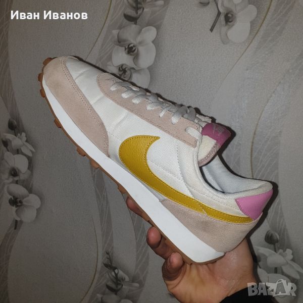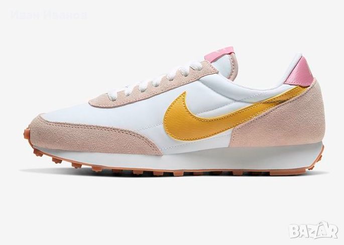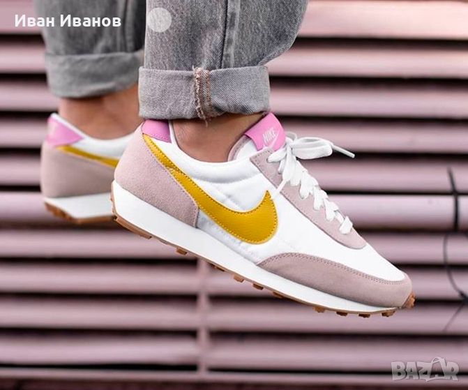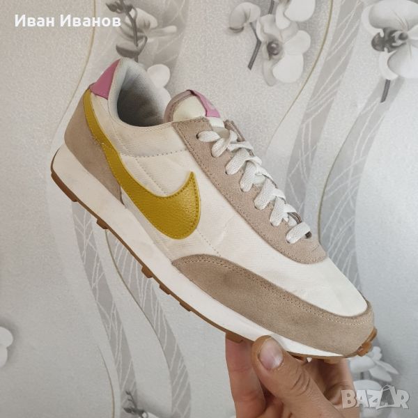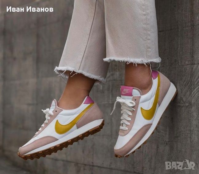 маратонки Nike Daybreak - Вечен стил и комфорт за вашето ежедневие!Нови , красиви , модерни , удобни .Дамските маратонки Nike Daybreak съчетават вечен стил и комфорт за вашето ежедневие. Тези маратонки имат ретро вдъхновен дизайн с модерни детайли, които пасват перфектно на вашия личен стил. Горната част е изработена от здрав и дишащ материал, който осигурява комфорт и вентилация през целия ден. Ударопоглъщащата междинна подметка абсорбира удара и осигурява отзивчиво изживяване при ходене. Обувките са с олекотена конструкция, която осигурява оптимална свобода на движение. С класическата си визия и удобна кройка, маратонките Nike Daybreak са идеален избор за всеки повод.Nike Daybreak Wheat (WMNS) са стилни и модерни маратонки, предназначени за жени. Неутралната цветова палитра и удобната кройка я правят перфектната обувка за всяко ежедневно облекло. С емблематичното лого на Nike и качествена изработка, тези маратонки са задължителни за модните жени.
