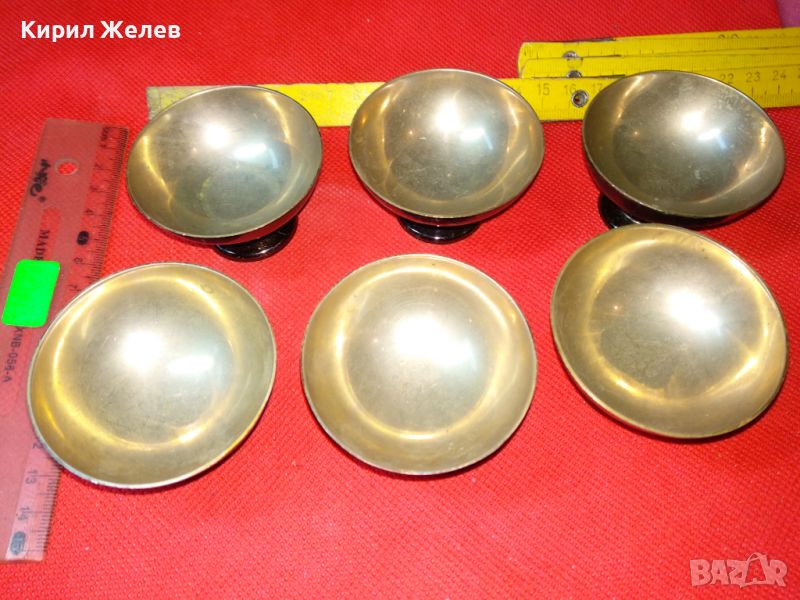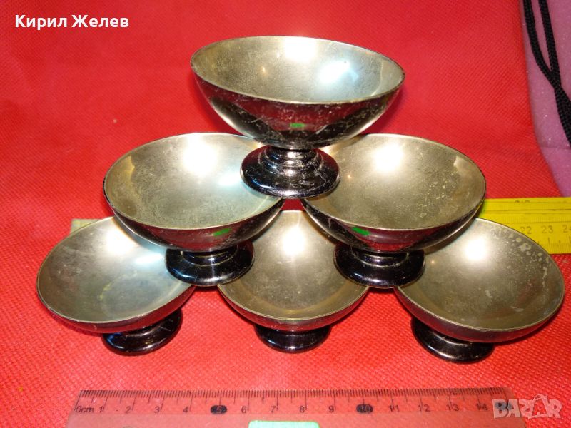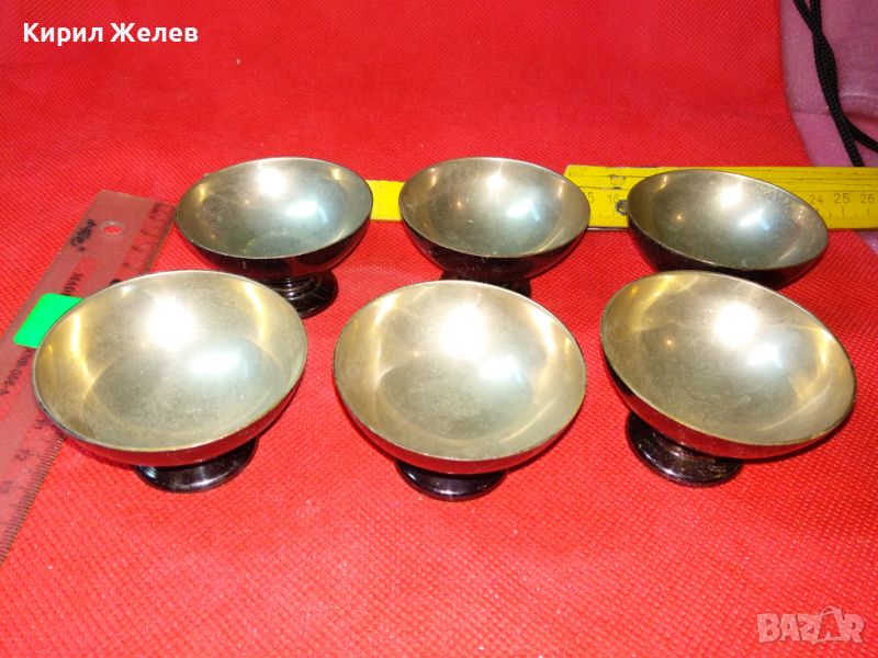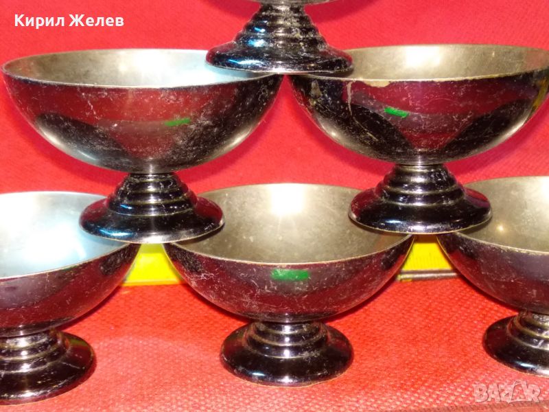 КОМПЛЕКТ 6 СТАРИ ПРЕКРАСНИ БРОНЗОВИ ПОСРЕБРЕНИ РЕТРО КУПИЧКИ За МЕЛБА СЛАДОЛЕД 44181