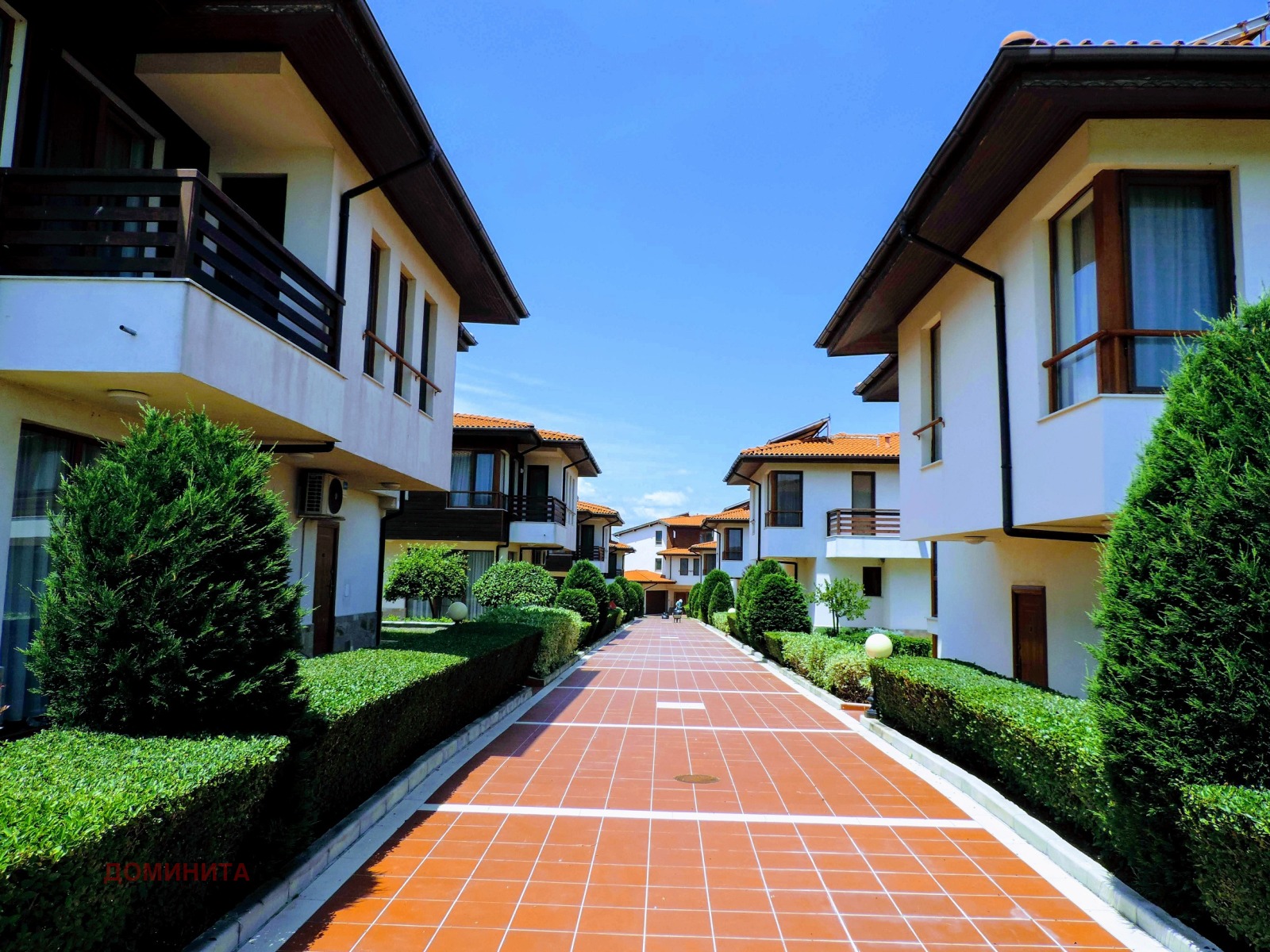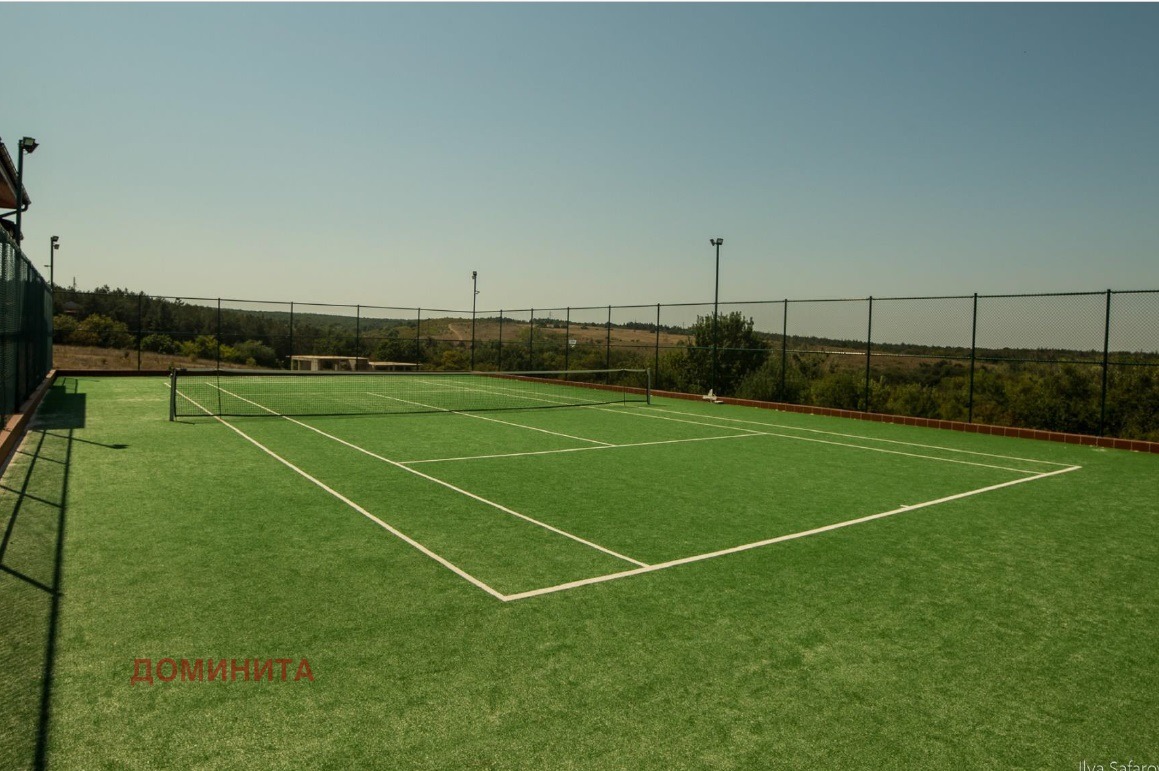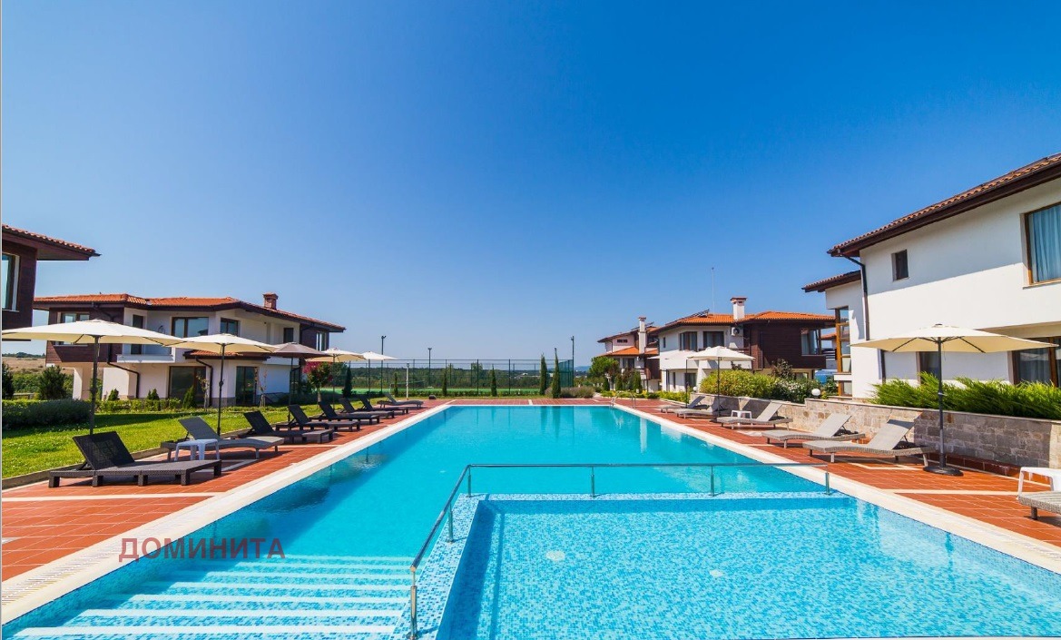 Предлага се за продажба самостоятелна къща в комплекс с двор от 310 кв.м., разположена на 2 минути пешеходно отстояние от плаж Корал и плаж Мечата дупка. В комплекса има подземен паркинг, басейн, тенис корт, както и много добре подържан двор с разнообразно озеленяване.