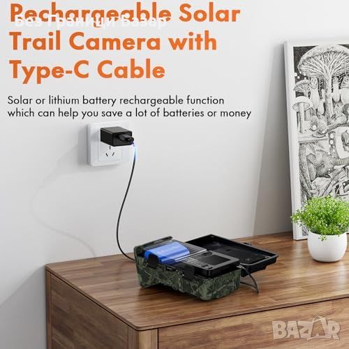 камера за дива природа - вградена батерия с капацитет 2500mAh, зарежда се чрез соларен панел.