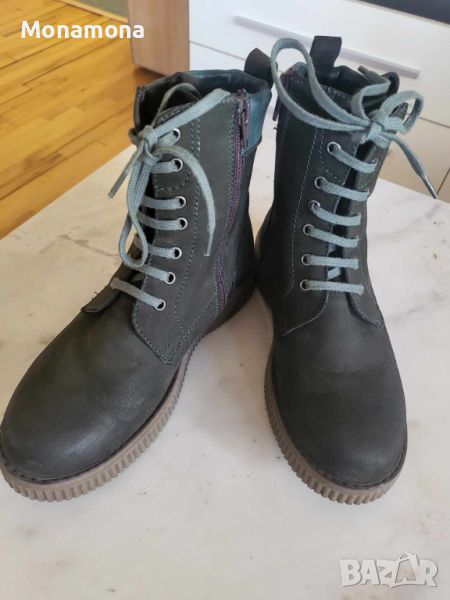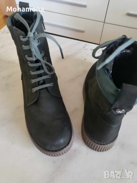 Страхотни боти, естествен набук. Масленозелени. Обувани веднъж за проба. 23,5/6 см. Купувани за 87 лв.