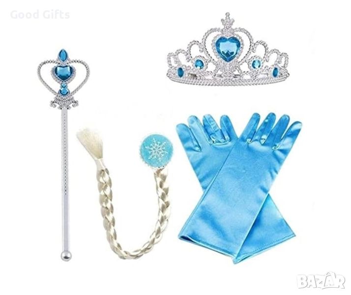 Съдържа дълга руса плитка, коронка, пръчица и ръкавици