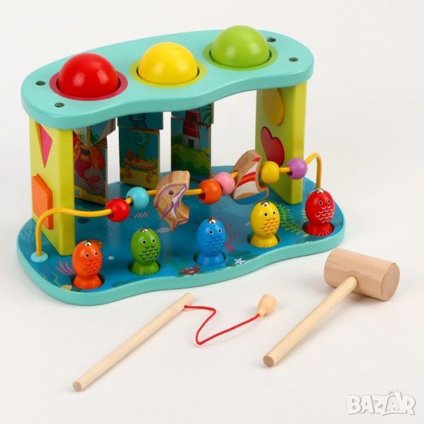 Дървена игра с чук и риболов 5в1