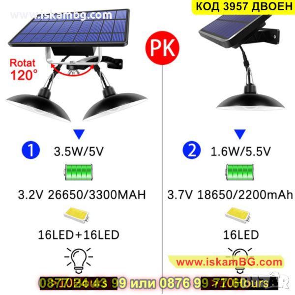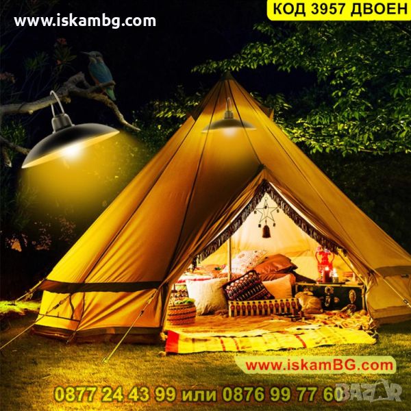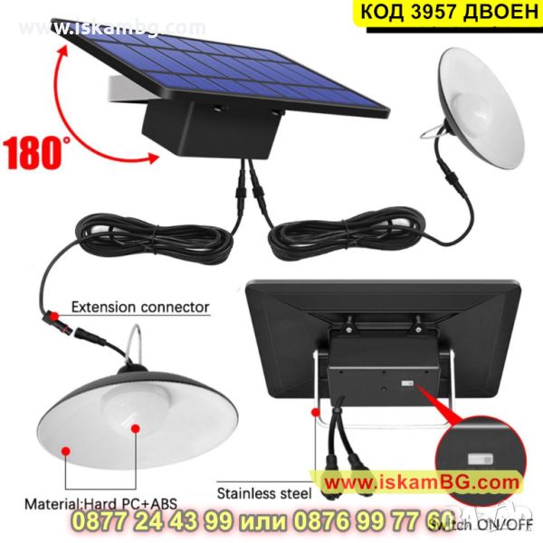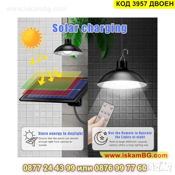 Висящи лед соларни лампи във форма на полилей с поликристален слънчев панел - КОД 3957 ДВОЕН