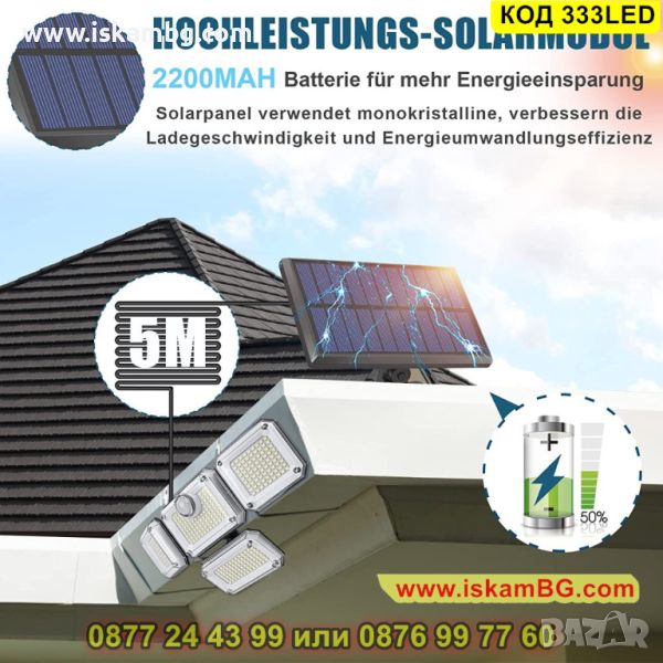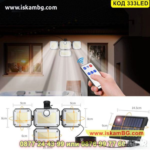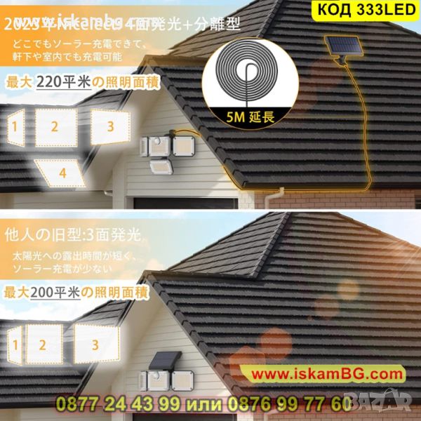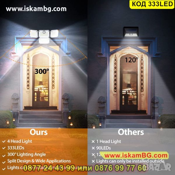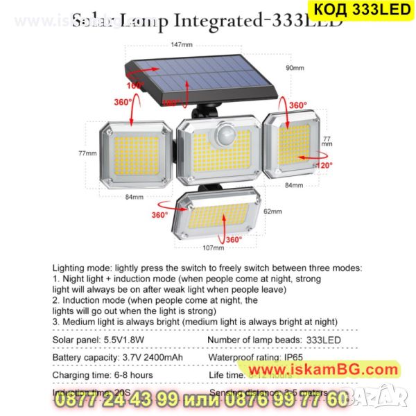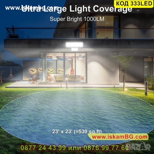Диапазон на осветяване: 300° широкоъгълно осветление, осветената площ може да достигне 70 квадратни метра