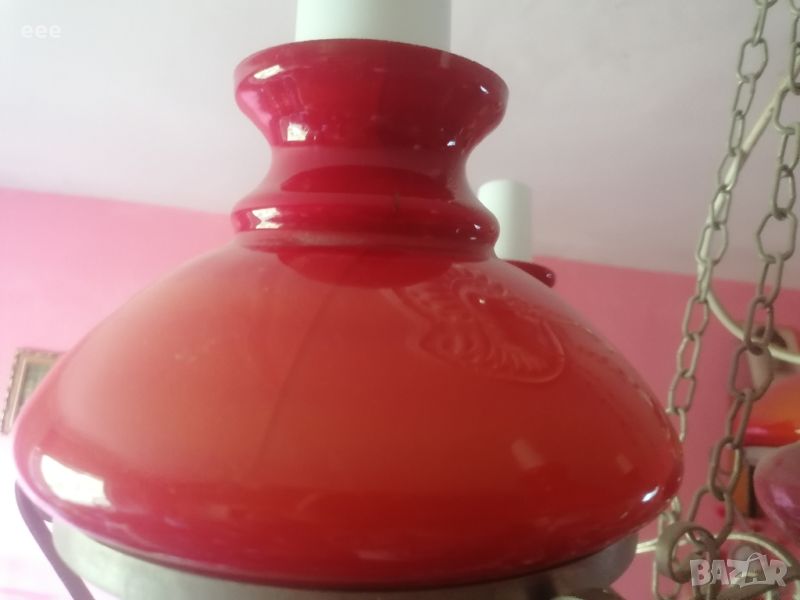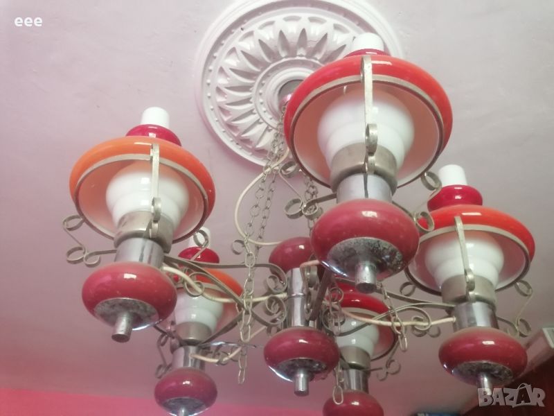 Продавам полилей на около 50 години петица. Крушите са с цокъл е27. Има два избледняли червени капака, като един има пукнатина около 10 см .Предпочитам лично предаване.