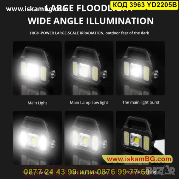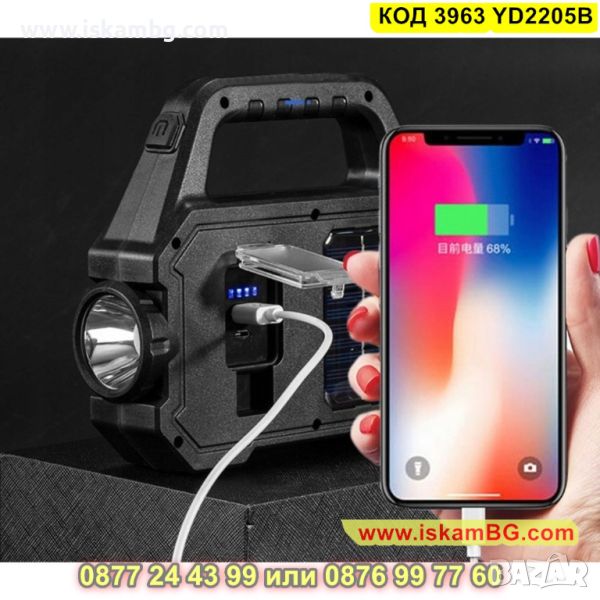 Прожектор със соларен панел за зареждане и рефлектор с 3 режима на работа - КОД 3963 YD2205B