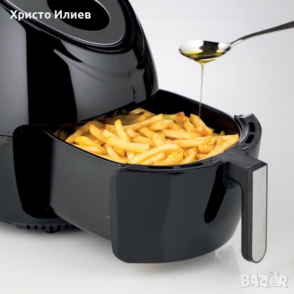 С фритюрника с горещ въздух Airy Fryer XXL на Ariete можете да пържите всяко ястие, дори в големи количества, като използвате само една лъжичка мазнина, за да получите здравословно и вкусно пържене едновременно.Благодарение на 5,5-литровата XXL кошница с Airy Fryer XXL можете да приготвите до 2,5 кг пържени картофи наведнъж !Приготвяйте пържени картофки, крокети, риба, месо и много други храни, както замразени, така и пресни , благодарение на 7-те предварително зададени режима на готвене .Фритюрникът готви благодарение на високотемпературния въздух , до 200 ° , който циркулира с максимална скорост и 360 ° ротация вътре в камерата за готвене. По този начин гарантира равномерно разпределение на топлината. Точно горещият въздух позволява на храните да се готвят равномерно и образува хрупкава златиста коричка отвън.Благодарение на горещия въздух няма да е необходимо да добавяте много мазнина, за да получите вкусно пържене. Една лъжица ще бъде достатъчна! По този начин ще внесете по-леки и здравословни, но вкусни храни на масата за цялото семейство. AIRY FRYER XXL готви бързо, здравословно и в големи количества, но ползите от него не спират дотук!Фритюрникът е проектиран така, че да не допуска пушек и лоши миризми в къщата : когато приготвяте пържена риба или месо, няма да се притеснявате от миризмата на пържено, тъй като въздушното готвене на Airy Fryer XXL не отделя миризмата на дим, типична за фритюрниците .И накрая, фритюрникът е лесен за почистване благодарение на подвижната незалепваща кошница и има ниско въздействие върху околната среда, тъй като не произвежда отработени мазнини , които са едни от най-големите замърсители на околната среда.