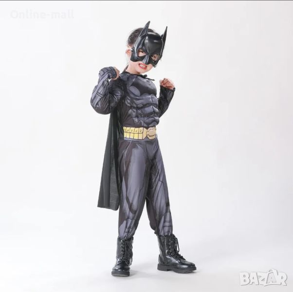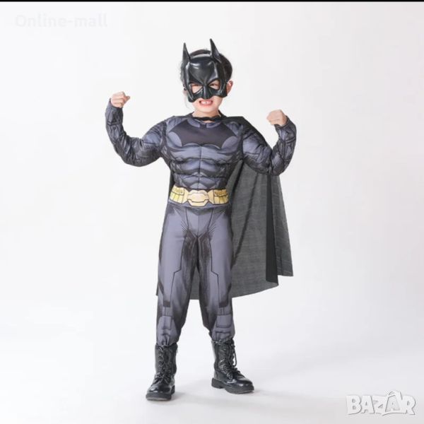 Детският костюм на Батман с мускули се предлага в три размера: