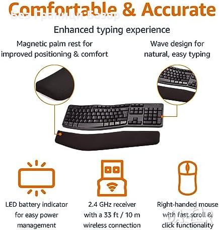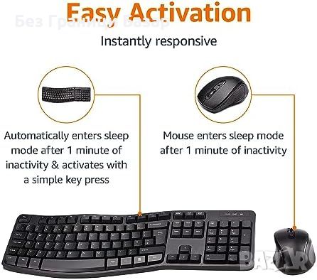 Нова Комфортна Клавиатура и Мишка Amazon Basics - Ергономична, Безжична до 10м