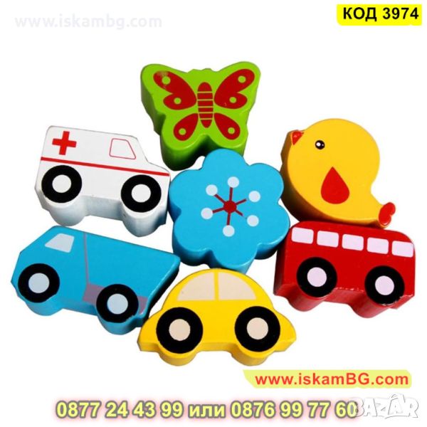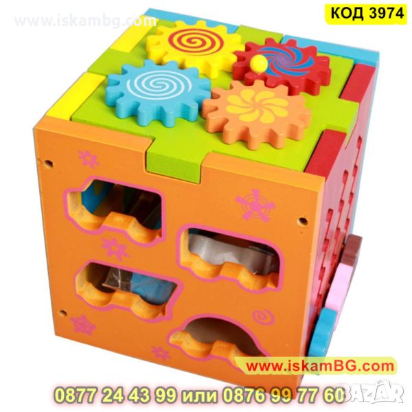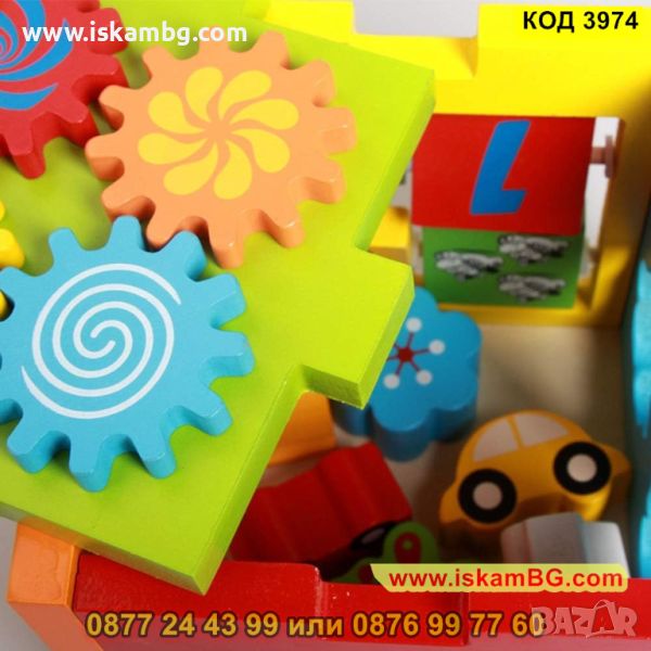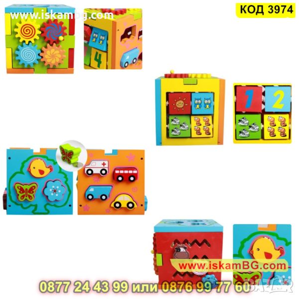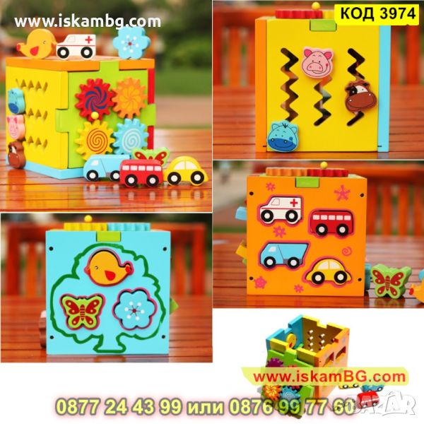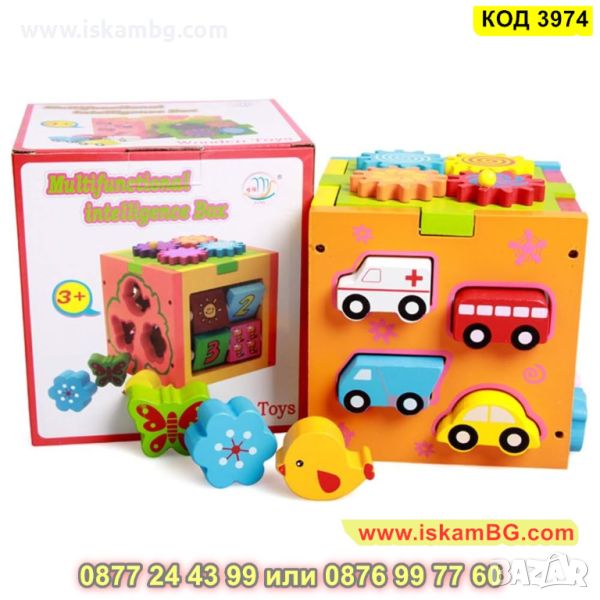 Образователен куб със сортер с превозни средства и животни изработен от дърво - КОД 3974