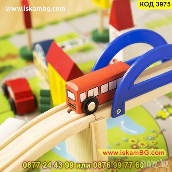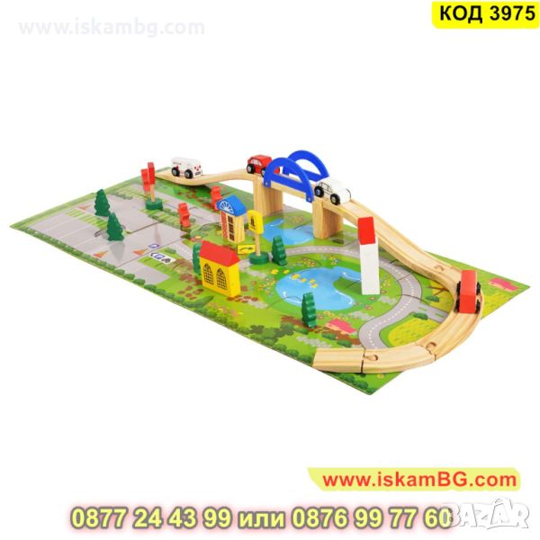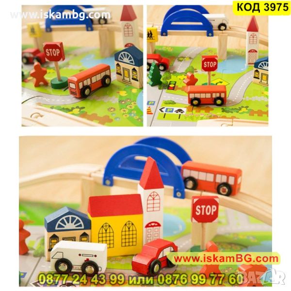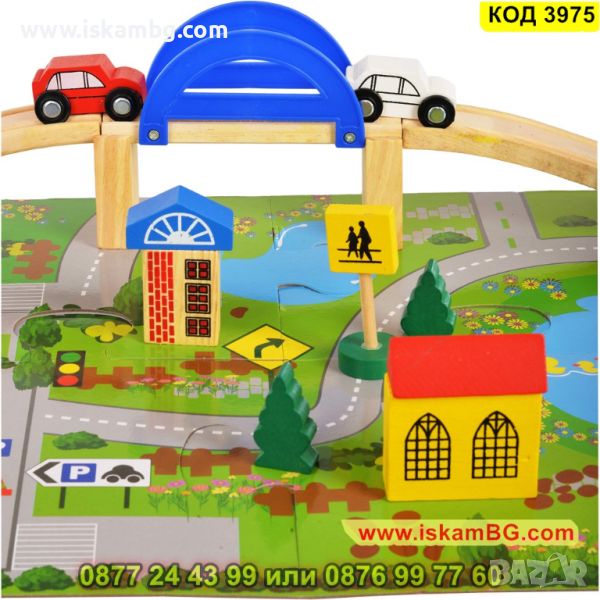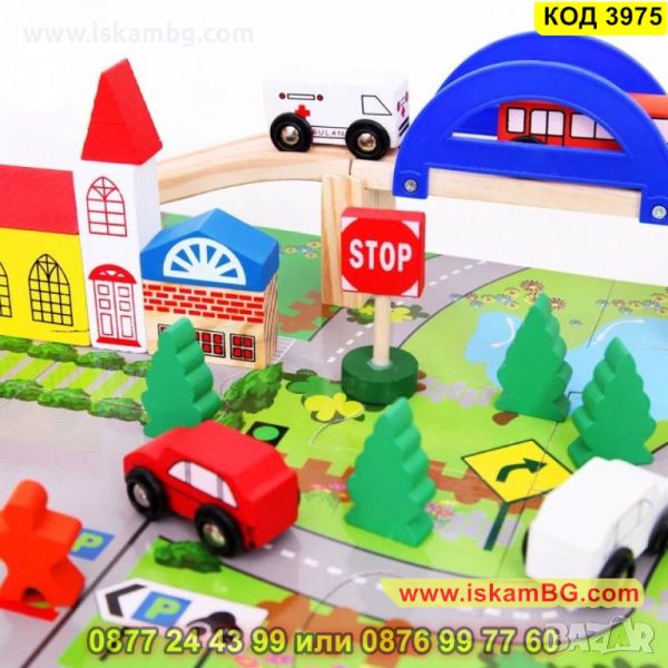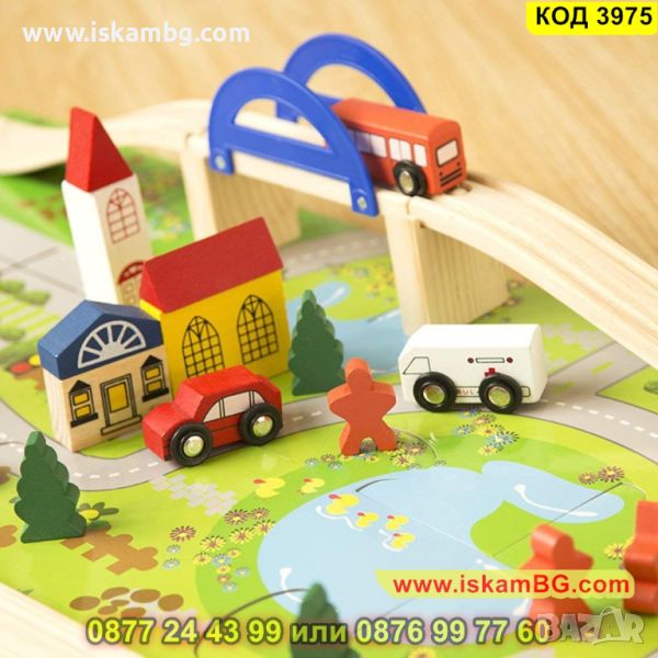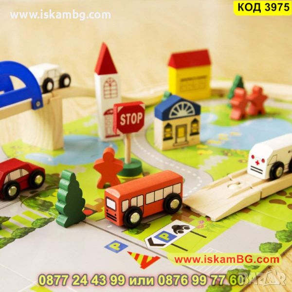 5 дървета за украса, 3 човечета, 2 пътни знака, 6 геометрични фигури за изграждане на сгради