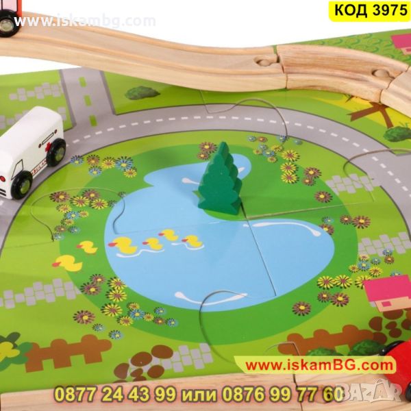 Основата се състои от 8 части на пъзел, които оформят пейзажа с улици, пътни знаци, езера и др