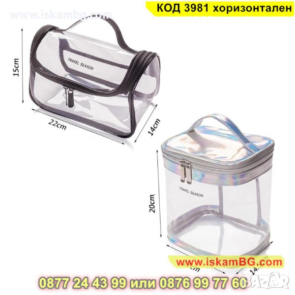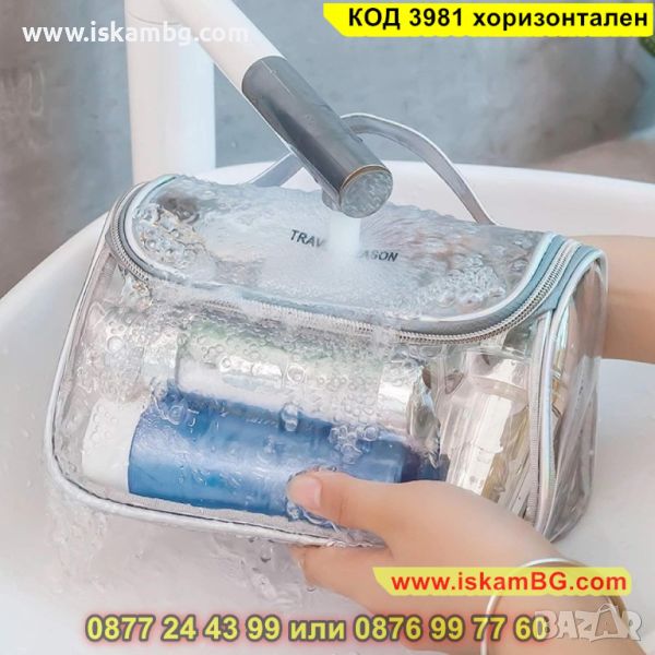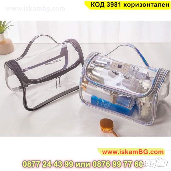 Стилен прозрачен несесер, който е предназначен да съхраните различни тоалетни принадлежности, като четка за зъби, шампоан, гъба, сапун, гребен или козметика. Този несесер е изключително практичен, защото е прозрачен и позволява да виждате кое къде се намира, както и да го откриете бързо. Направен е от прозрачен PVC материал, който е устойчив на пръски и лесен за почистване. Тоалетният несесер е с размери - 22 х 15 х 14 см.