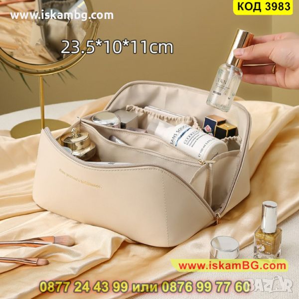 Козметична чантичка за пътуване. Носете всичките козметични продукти, от които имате нужда, когато пътувате, и ги съхранявайте спретнато организирани с тази пътна козметична чанта с голям капацитет. Изключително издръжлива PU кожа.