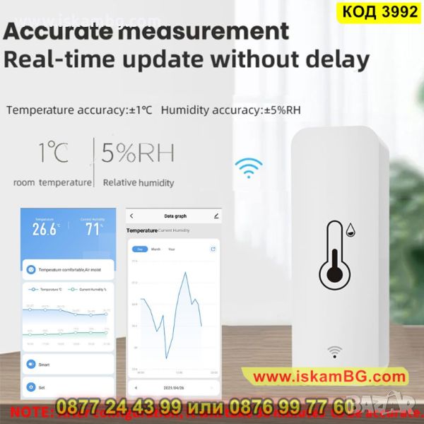 WIFI свързаност - нямате нужда от допълнителни шлюзове, просто достъп до WIFI и ТОЗИ СЕНЗОР