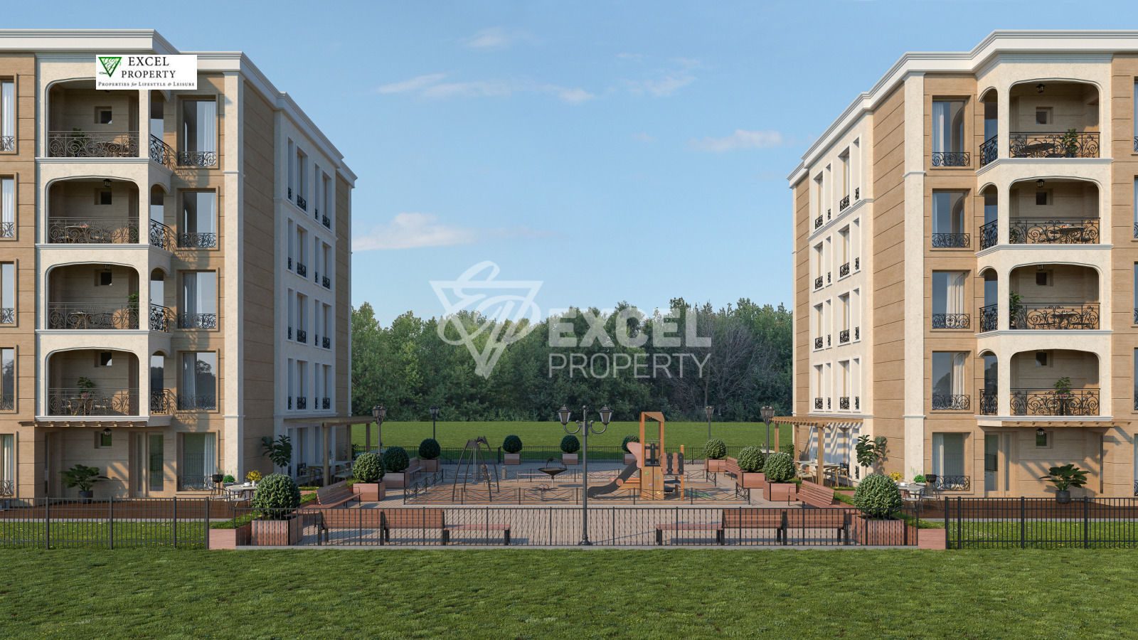 Ексел Пропърти предлага за продажба нови апартаменти в кв. Черно море, Несебър. Сградите ще са две като ще бъдат построени на два етапа. В момента се строи сграда 1, която е на етап АКТ 14. Тя разполага с 5 студия, 25 двустайни и 20 тристайни апартамента. Издават се на етап 'до ключ' като инвеститора предлага довършителни работи за допълнително заплащане. Сградата ще бъде завършена и въведена в експлоатация декември 2025 година. Апартаментите са без такса поддръжка и са идеални за целогодишно ползване. В сградата има асансьор, възможно е разсрочено плащане докато тече строителството.