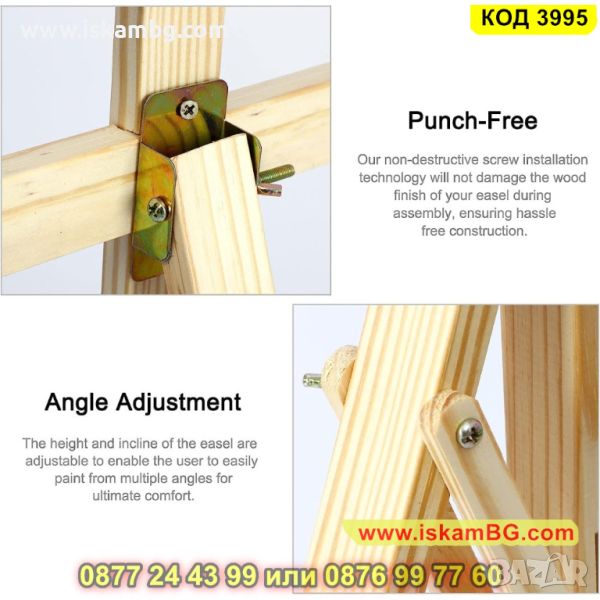 И това не е всичко! Дървеният статив за рисуване и картини дава възможност да бъде регулиран в зависимост от Вашите нужди и предпочитания. С височината си от 170 см, стативът е перфектен за поставяне на големи или средни по размер картини. Подарете си удобство и комфорт, докато рисувате, като регулирате наклона и височината на дървения статив, за да бъде изцяло удобен и функционален за Вашите изисквания и нужди!