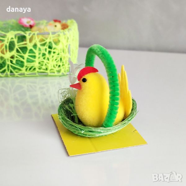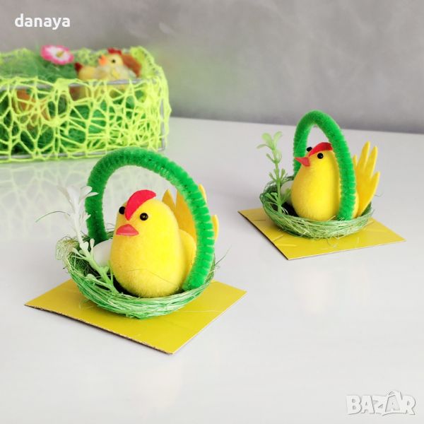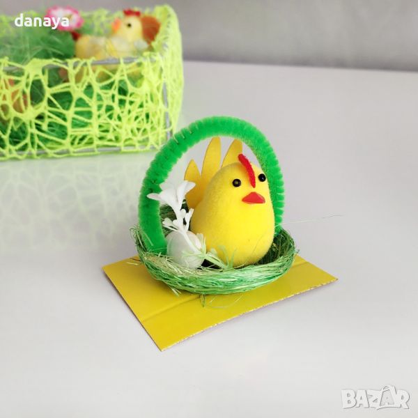 4771 Мини декорация за Великден Кокошка в зелена кошничка → Обява 45468124