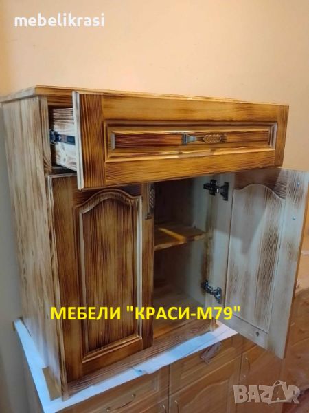 Класически кухненски шкаф изработен изцяло от естествено дърво/БОР/.