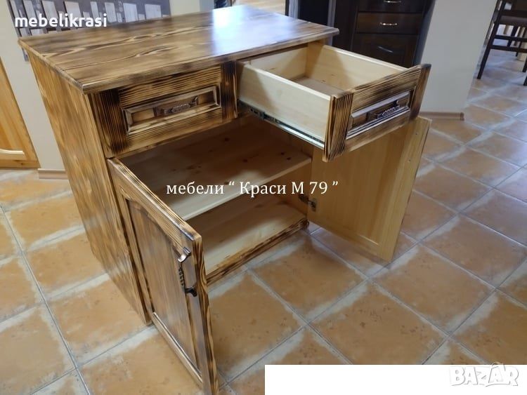 Шкаф -МАСИВ,Обгорен и лакиран. С размери 63/50/85см. Наличен!