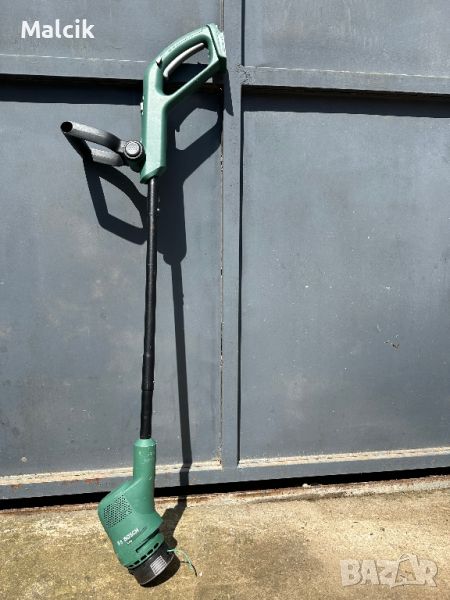 Работещ акумулаторен тример за трева на бош с една батерия който държи много 18волта 2.5амперчаса и зарядно устройство скоро докаран от чужбина липса предпазителя и за това цената е толкова