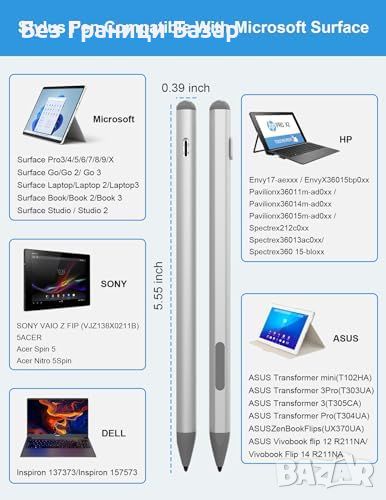 Нов Стилус Surface Pro с USB-C Бързо Зареждане и LED Индикатор Писалка таблет