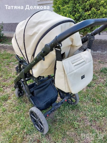 Купена е от Вис Виталис и се продава пълен комплект с дъждобран, комарник, поставка за чаша, покривало за двата коша, чанта и багажна чанта под количката.
