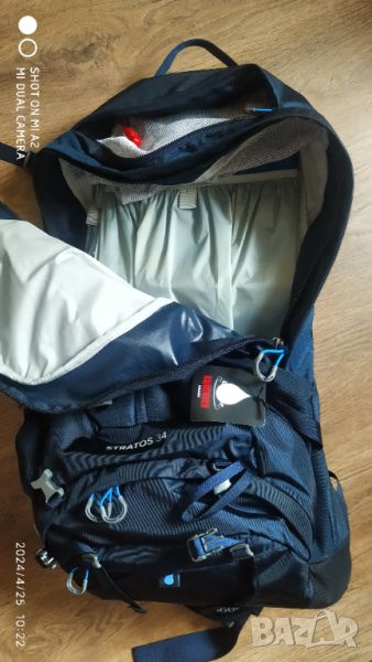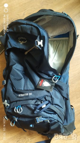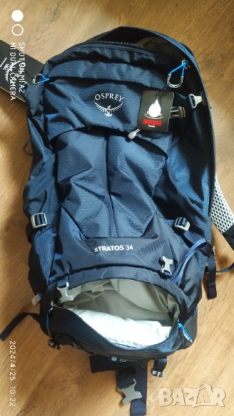 Иновативна и вентилирана дневна раница за туризъм от OspreyВдъхновен от многократно награждаваната технология AG AntiGravity™ на Osprey, Stratos 34 е класическа и изчистена туристическа раница за ежедневието, с достатъчно място за съхранение и леко носене. Stratos е оборудван с вградено покривало за дъжд, така че можете да използвате раницата при всякакви условия, дъжд или блясък.