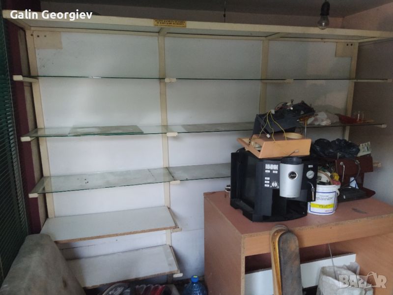 Стелаж метален ,височина 200 см, дължина 250 см ,ширина 40 см. В момента половината рафтови са с ПДЧ плоскости ,половината със стъкло. Възможно е да се подменят. Рафта е много здрав и стабилен.Подходящ за складове и магазини.