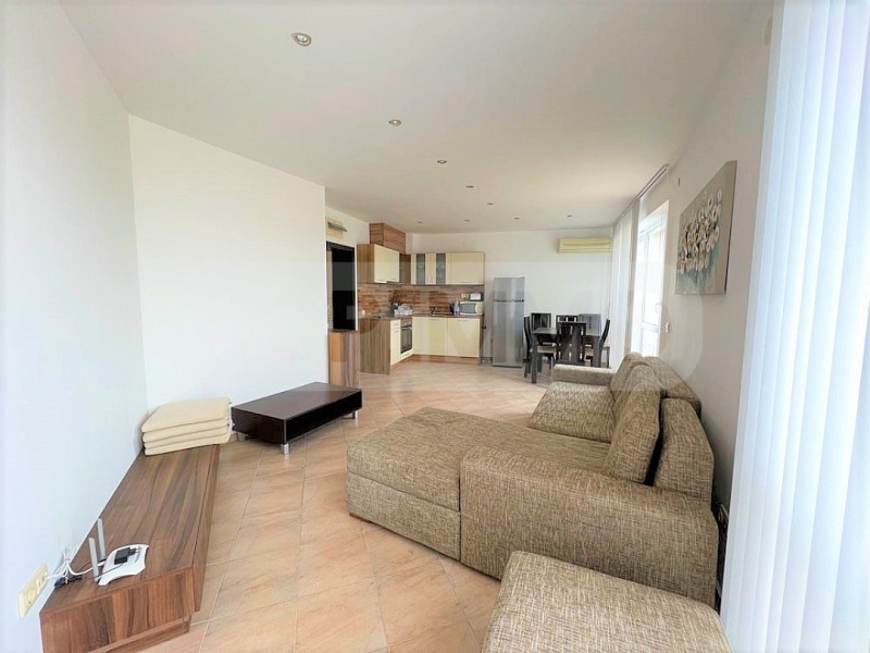 Апартаментът, който предлагаме се състои от антре, дневна с кухненска част, 2 спални, баня с тоалетна. От просторната тераса можете да се наслаждавате на релаксираща гледка към морето и околността.