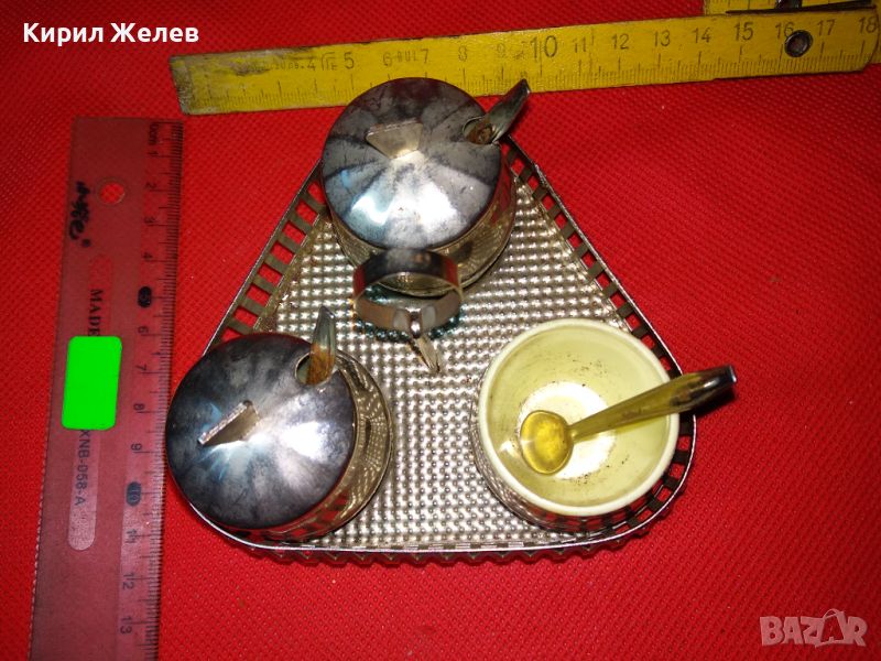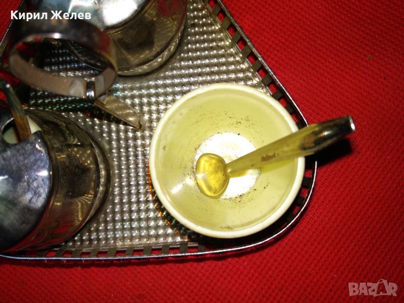 СТАР КОМПЛЕКТ ЧАШКИ ЛЪЖИЧКИ ПОДНОС За ХАЙВЕР СОСОВЕ МЕТАЛ КЕРАМИКА За РЕТРО ИНТЕРИОР КОЛЕКЦИЯ 44160