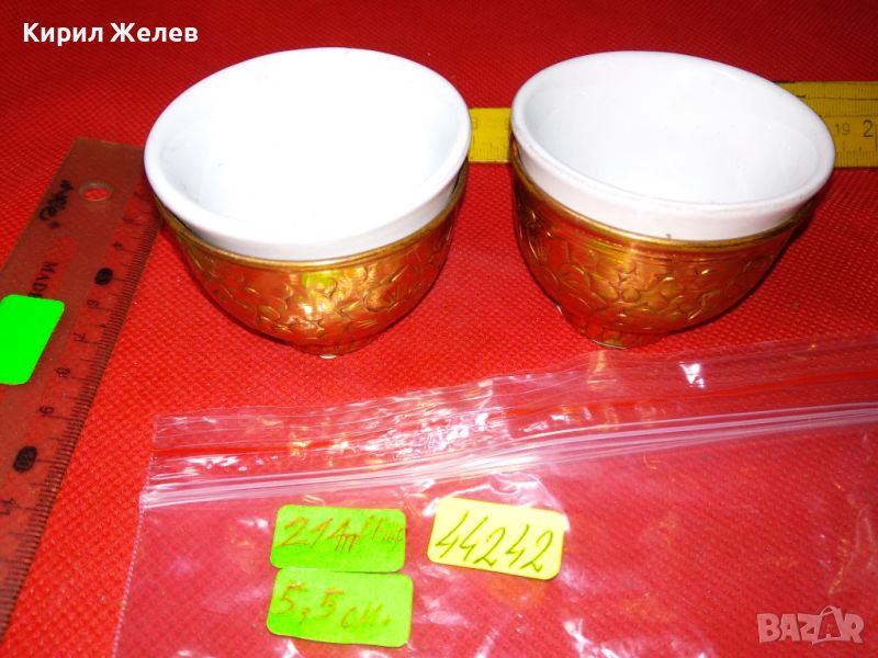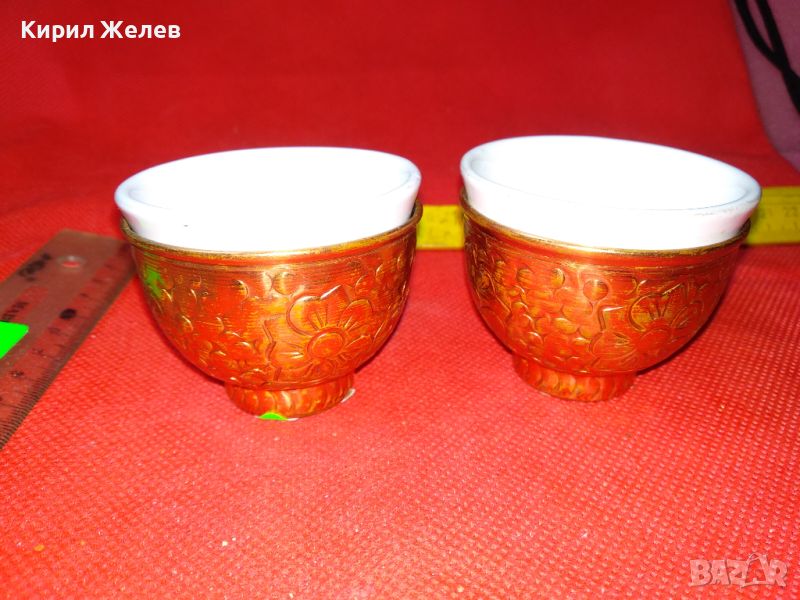 2 СТАРИ ЧАШКИ КЕРАМИКА / ПОРЦЕЛАН и КОВАНА МЕД МНОГО КРАСИВИ За КОЛЕКЦИЯ ЕТНО ИНТЕРИОР МЕХАНА 44242