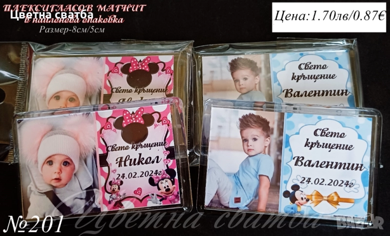 Магнити за кръщене, рожден ден; Подаръци за гости за кръщене, Подаръчета за кръщене → Обява 45476914